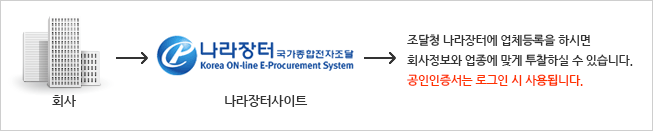 • - 등록대상자: 나라장터에서 업체등록과 공인인증서를 발급 받은 업체로 전자입찰 참여 및 기타 업무를 처리하고자하는 업체사용자