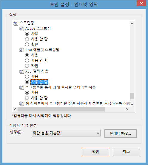 익스플로러 8.0 교차사이트 스크립팅 문제해결(XSS)